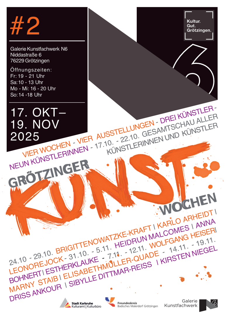 Die Grötzinger Kunstwochen #2 im Kunstfachwerk N6 finden vom Freitag, 17 . Oktober, bis Sonntag, 19. November, statt.